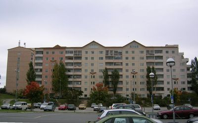 Brandbergen comprende bloques de apartamentos y viviendas familiares, albergando aproximadamente 10,000 residentes a 18 kilómetros al sur de Estocolmo.