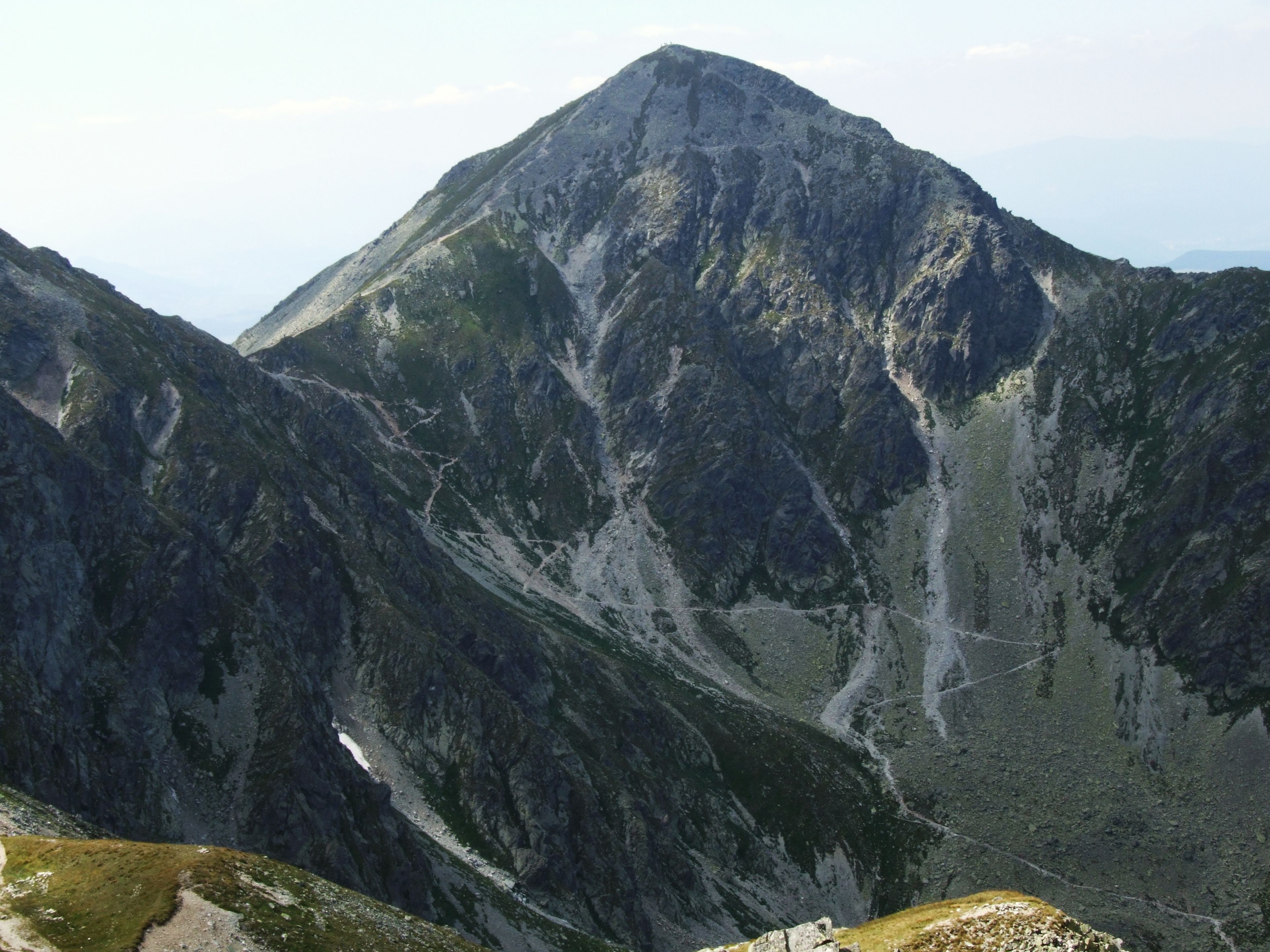 La cumbre presenta un pico secundario llamado Plačlivé nad Vrecom a 2130 metros, formando una silueta característica de doble pico.