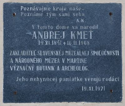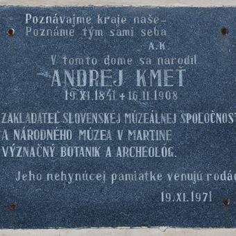 Rodný dom A. Kmeťa-Kmeťov. grunt, tabuľa pamätná