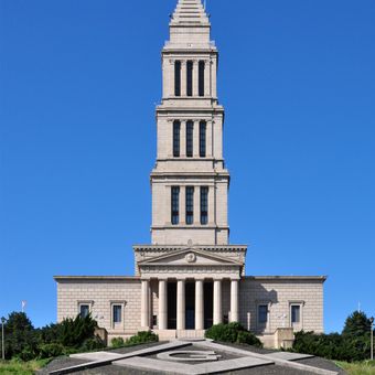 El Memorial Nacional Masónico George Washington se eleva 333 pies sobre Shooter's Hill, incorporando elementos arquitectónicos neoclásicos, góticos y renacentistas.