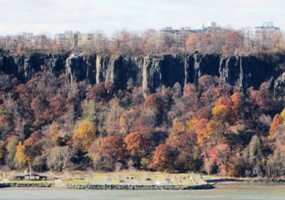 Los Palisades se extienden 32 kilómetros por la orilla occidental del río Hudson, alcanzando alturas de 160 metros en su extremo norte.