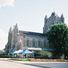 Las torres gemelas de la Catedral, construidas con arenisca de Ohio y piedra caliza de Indiana, muestran el compromiso con materiales auténticos.