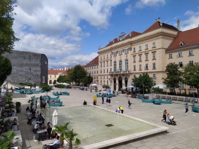 Dos grandes museos de arte se encuentran uno al lado del otro, mostrando obras modernas austriacas y piezas contemporáneas de Europa Central. Los visitantes pueden pasar de una colección a otra y explorar diferentes direcciones artísticas en el mismo espacio.