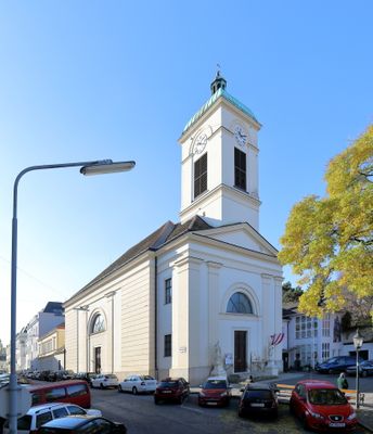 La Iglesia Parroquial de Döbling se encuentra en Kardinal-Innitzer-Platz 1, con una sala principal barroca de estructura similar a un templo.