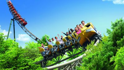 El parque incluye la primera montaña rusa Boomerang de Europa desde 1984 y un centro acuático interior inaugurado en 2019.