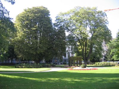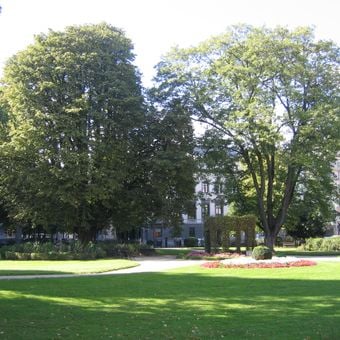 En la plaza crecen cuatro árboles registrados como notables: dos sicómoros dorados y dos castaños comunes que realzan el paisaje natural.