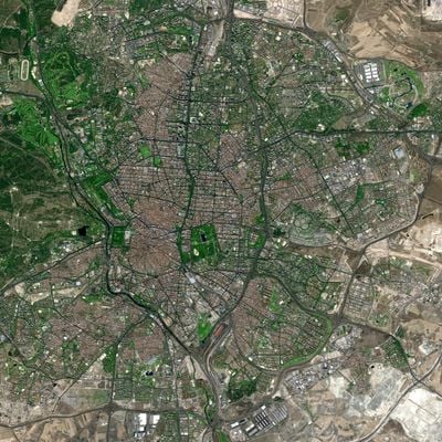 Madrid se extiende por una meseta a 667 metros sobre el nivel del mar, con amplias avenidas flanqueadas por edificios históricos y zonas verdes.