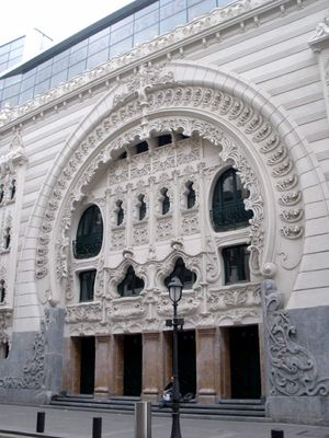 El Teatro Campos Elíseos es un teatro de estilo Art Nouveau en el barrio de Abando, diseñado por Jean Batiste Darroquy y completado en 1902. Su interior sigue un diseño en forma de herradura con elementos decorativos elaborados que adornan toda la fachada.