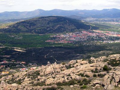 En dias claros, la cumbre ofrece vistas que alcanzan tanto hacia el area metropolitana de Madrid como hacia las mesetas lejanas al norte de la cordillera. Esta vista bidireccional revela el contraste entre la expansion urbana y las tierras altas mas vacias.