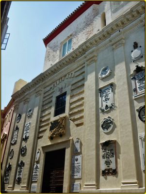 Las lápidas en las paredes exteriores conmemoran a los diputados que apoyaron la Constitución de 1812, colocadas durante la celebración del centenario.