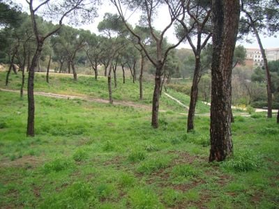 El espacio verde de 40 hectáreas contiene vegetación mediterránea, incluyendo pinos, praderas y numerosos senderos que recorren su terreno natural.
