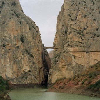 El Desfiladero de los Gaitanes es un cañón de piedra caliza en la provincia de Málaga por el que el río Guadalhorce serpentea a través de gargantas estrechas y empinadas. En algunos tramos la grieta se reduce a menos de diez metros de ancho, mientras que las paredes rocosas se elevan hasta 400 metros de altura.