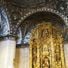 El retablo principal muestra columnas doradas y esculturas policromadas que representan el martirio de Santa Tecla junto con figuras de otros santos.