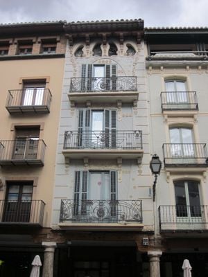 Casa La Madrileña es un edificio en la Plaza del Torico que combina características modernistas con métodos de construcción locales. La estructura tiene varios niveles, con espacios residenciales arriba y áreas comerciales en la calle, un arreglo común para los edificios de su época.