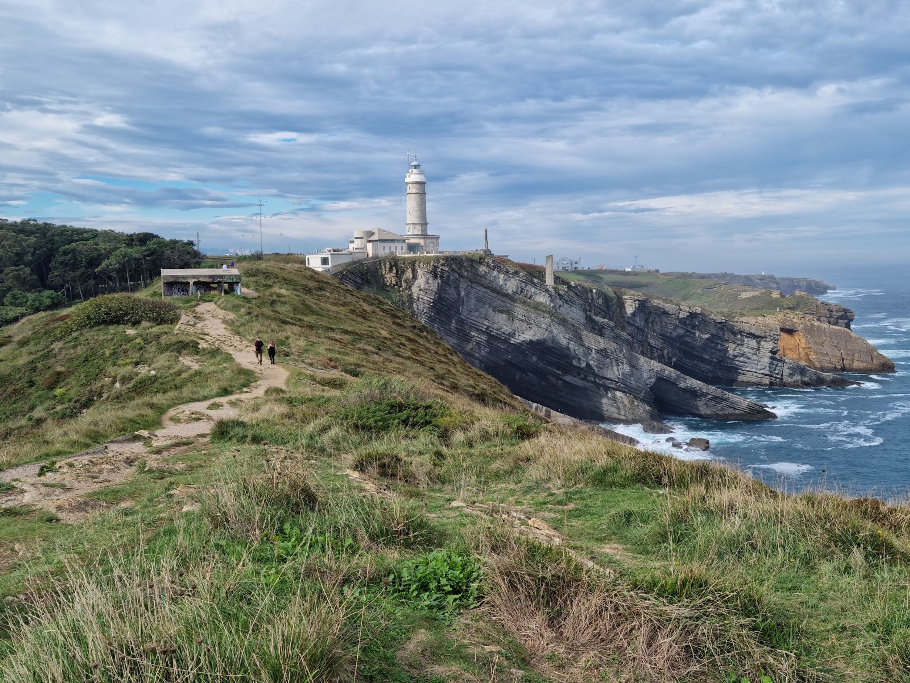 El faro de piedra se eleva 30 metros sobre los acantilados, señalando la entrada a la Bahía de Santander con su torre blanca y sala de linternas.