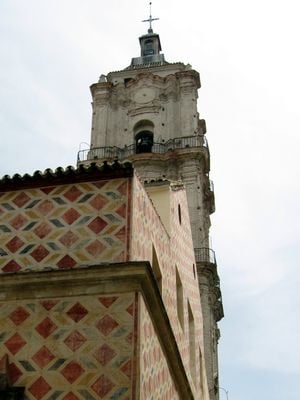 El edificio contiene una notable estatua de San Juan del siglo XVII creada por Francisco Ortiz y exhibe murales exteriores del siglo XVIII.
