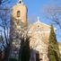 La torre de la iglesia, que data del siglo XVII, sobrevivió a la destrucción de la Guerra Civil y permanece en la estructura actual.