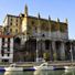 La fachada este muestra tallas medievales conocidas como El Cortejo, que representan personajes de la época vestidos según la moda flamenca borgoñona.