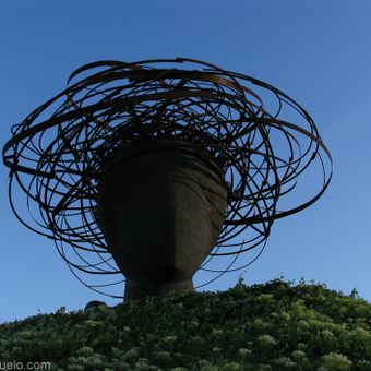 La escultura de bronce y acero mide 13 metros de altura y representa una cabeza femenina orientada hacia el norte del centro urbano.
