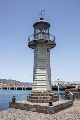 La Farola del Mar es un faro de acero en Santa Cruz de Tenerife que mide 27 metros de alto y cuenta con una torre esquelética cuadrada con vuelos de escaleras expuestas que conducen a la cámara de la linterna. Su diseño abierto permite una visibilidad clara desde el mar.