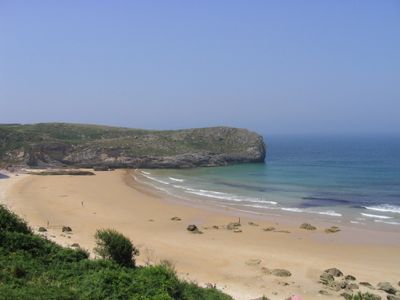 La Playa de Ballota se extiende por 350 metros en la costa norte española, alternando zonas de arena blanca con secciones de guijarros.
