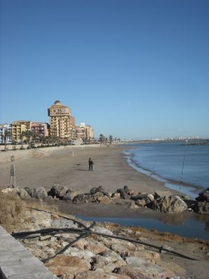 Playa de Port Saplaya Sur, Playa de arena dorada en Alboraia, España.