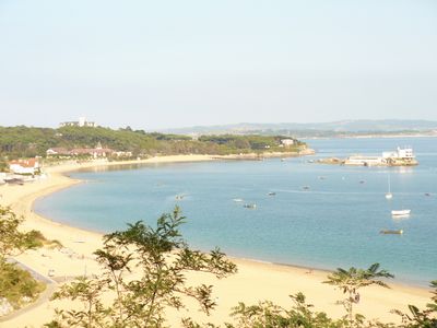 La Playa de los Peligros se extiende 200 metros por la costa cántabra, con arena dorada y aguas protegidas cerca del centro de Santander.