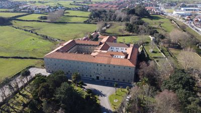El Seminario de Monte Corbán se sitúa en un edificio monástico con elementos gótico-renacentistas, incluyendo un claustro y muros de piedra junto al mar Cantábrico.