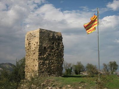 La estructura de piedra del Castell de Tona se encuentra en una posición elevada, con murallas defensivas y torres que dominan el paisaje catalán.
