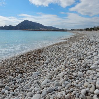 La Playa de la Roda se extiende a lo largo de 825 metros en la Costa Blanca, con una combinación de arena y grava junto a las aguas mediterráneas.