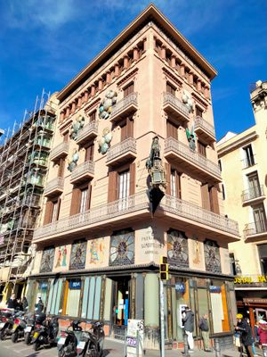 Casa Bruno Cuadros, Edificio residencial con arte público en La Rambla, Barcelona, España.