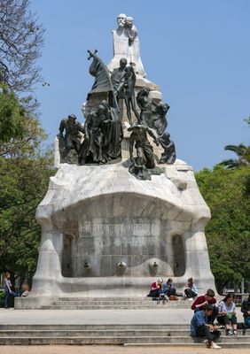 Instalado inicialmente en 1904 en Plaza de la Universidad, el monumento fue desmontado durante la Guerra Civil y reconstruido en Plaza Tetuan en 1985.