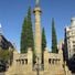 La columna de piedra de veinte metros presenta una estatua de bronce de Jacint Verdaguer en su cima, rodeada por seis cipreses en su base.