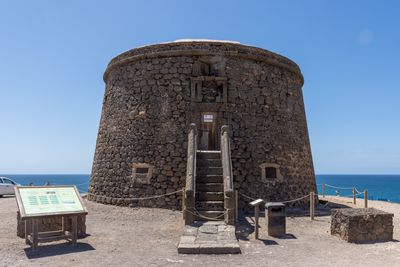 Los materiales de piedra utilizados en la construcción procedían de una cantera cercana a la iglesia de El Cotillo, con un puente levadizo original.