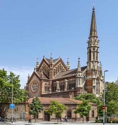 Iglesia y convento de las Salesas, Templo historicista en Dreta de l'Eixample, Barcelona, España.