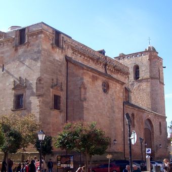 La iglesia tiene dos entradas: el portal norte conduce a la Plaza Mayor mientras el portal sur conecta con la Plaza de la Iglesia.