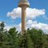 El complejo de depósitos de agua incluye un depósito rectangular inferior y una torre cilíndrica que alcanza una altura de 70 metros.