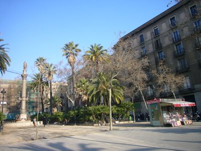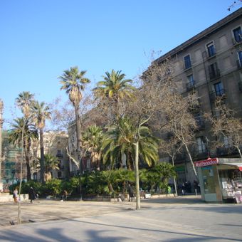 Esta plaza rectangular situada entre el Paseo de Colón y la Calle de la Mercè presenta un jardín central con palmeras y plantas ornamentales.