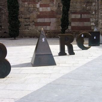 Barcino, Poema visual escultórico en Plaça Nova, Barcelona, España.