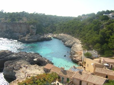 Cala s'Almonia, Playa de arena blanca en Santanyí, España.