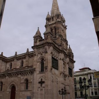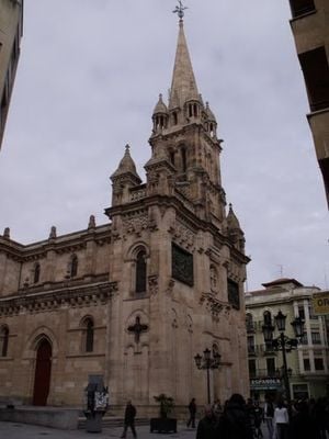 La Iglesia de San Juan de Sahagún presenta arcos de medio punto, muros de piedra robustos y detalles arquitectónicos propios del estilo neorrománico.