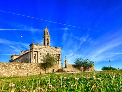 El santuario de piedra se eleva sobre una pequeña colina con vistas al valle del río Deza, en la carretera entre Silleda y Vila de Cruces.
