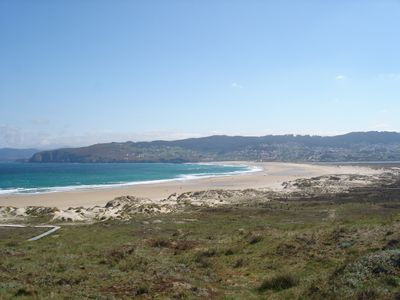 La playa se extiende a lo largo de 3600 metros en la costa norte de Galicia, con amplias extensiones de arena bordeadas por dunas naturales.