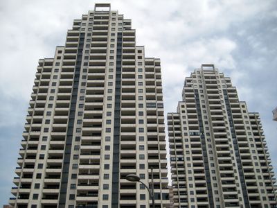 El complejo Gemelos 26 comprende dos edificios idénticos de 31 plantas que alcanzan 114 metros de altura, con cuatro ascensores en cada estructura.
