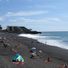 La playa se extiende por 500 metros de costa, con arena volcánica negra que contrasta con las palmeras altas y las aguas del Océano Atlántico.