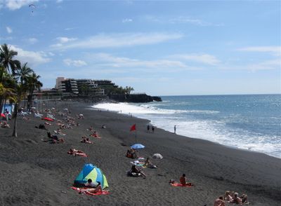 Playa de Puerto Naos, Playa de arena negra en Puerto Naos, La Palma, España.