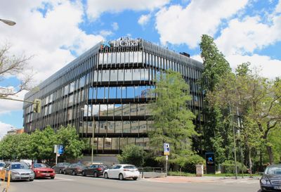 Edificio La Caixa, Edificio moderno en el barrio de Almagro, Madrid, España.