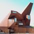 La estructura metálica combina revestimiento de acero cortén con placas de yeso, representando una innovación en la construcción de iglesias.