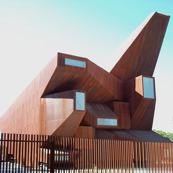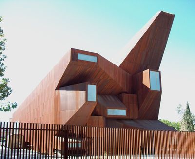 Los arquitectos Ignacio Vicens y José Antonio Ramos desarrollaron tres propuestas diferentes antes de finalizar el diseño utilizando acero cortén por motivos presupuestarios.