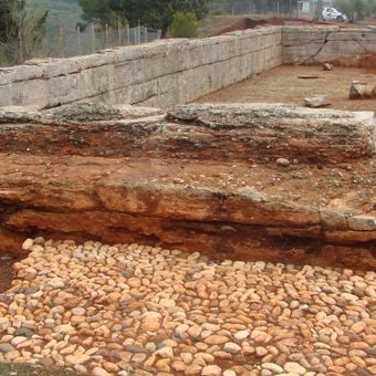 Los visitantes pueden observar la estructura de ladrillo conservada de un pozo, mientras que el pozo occidental permanece lleno de tierra.